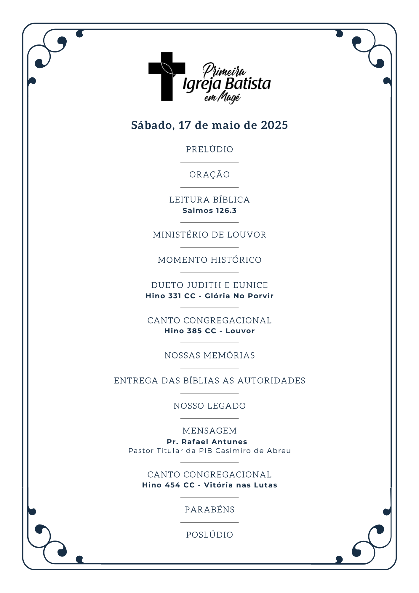 Sábado – 17 de maio